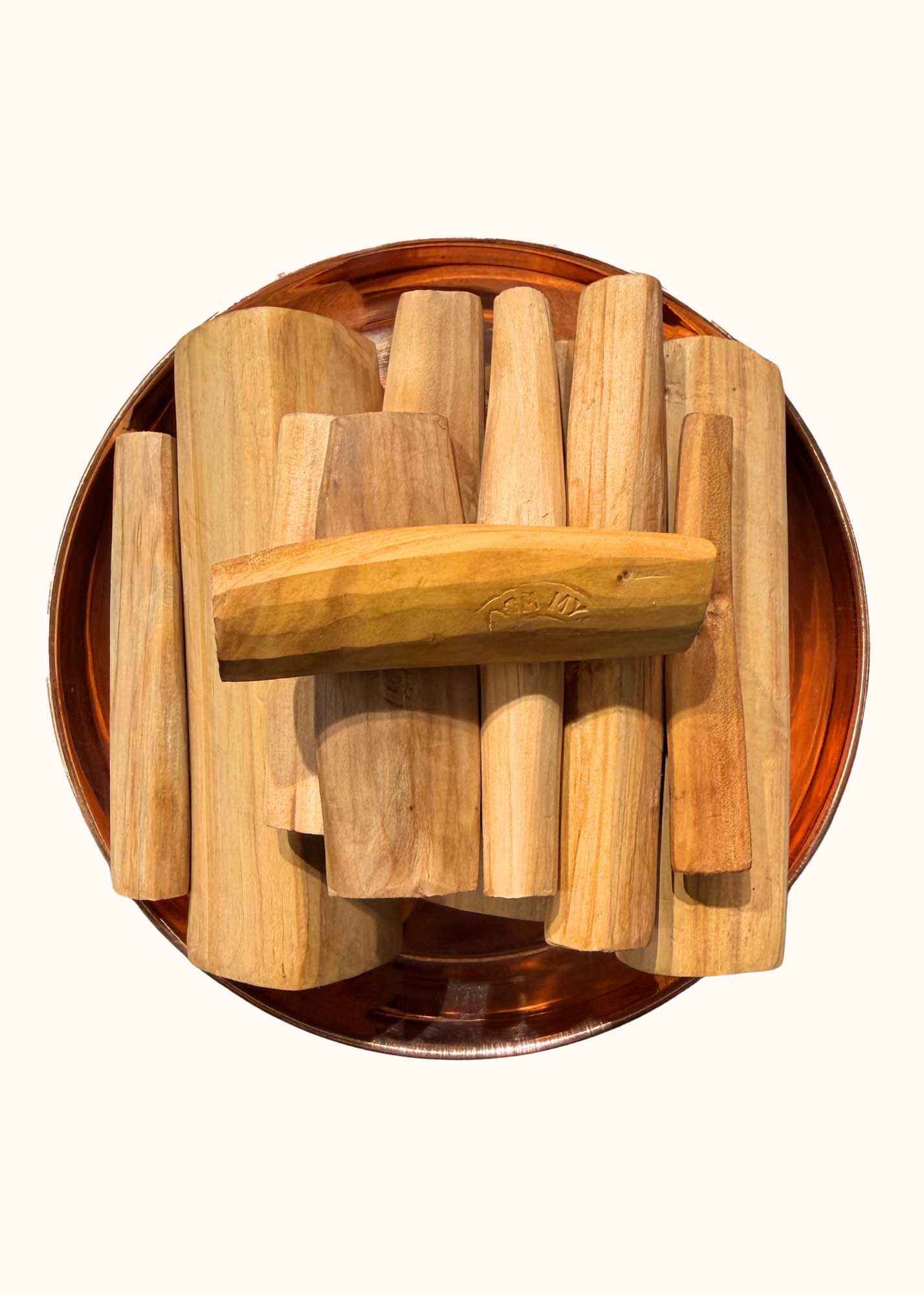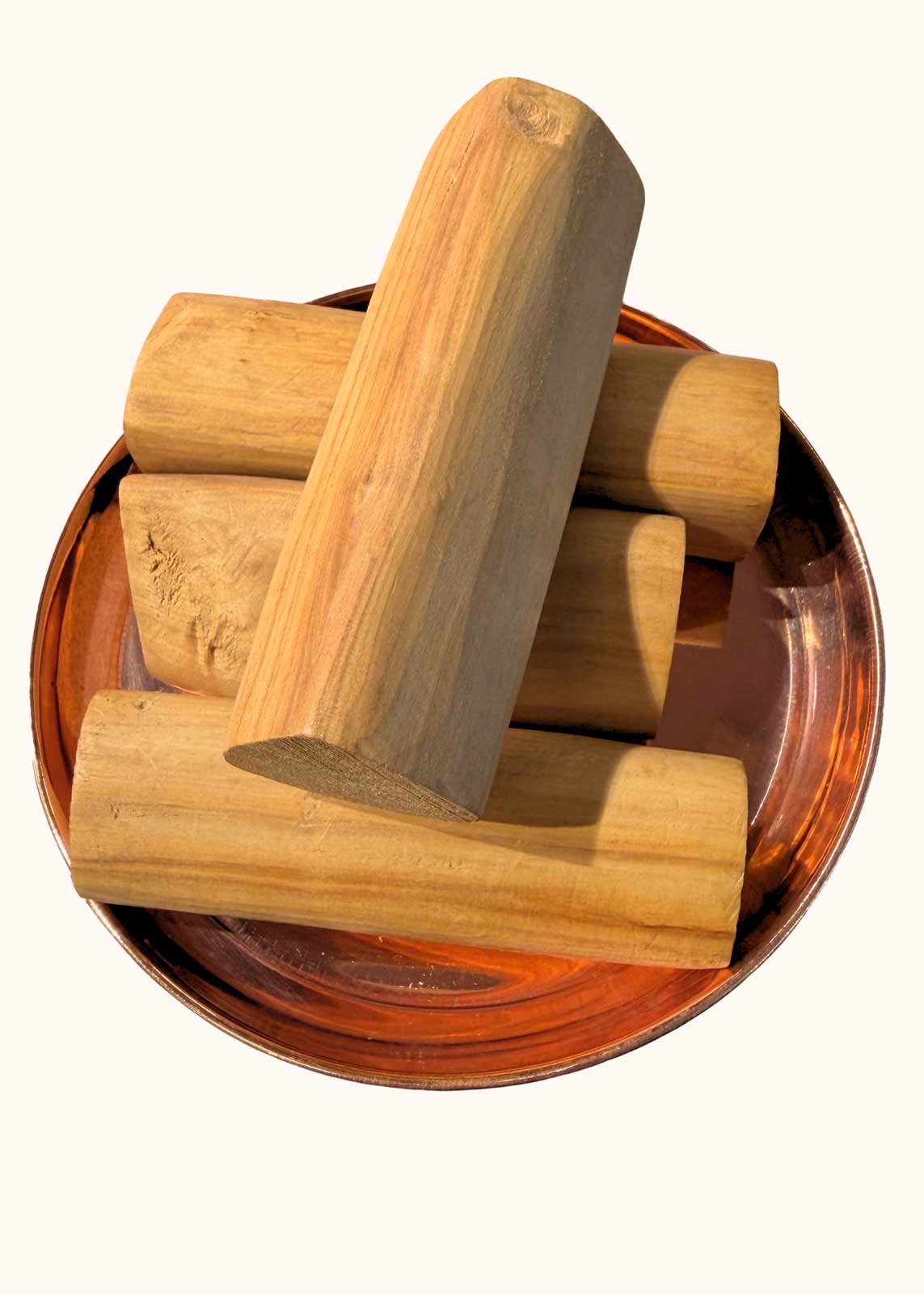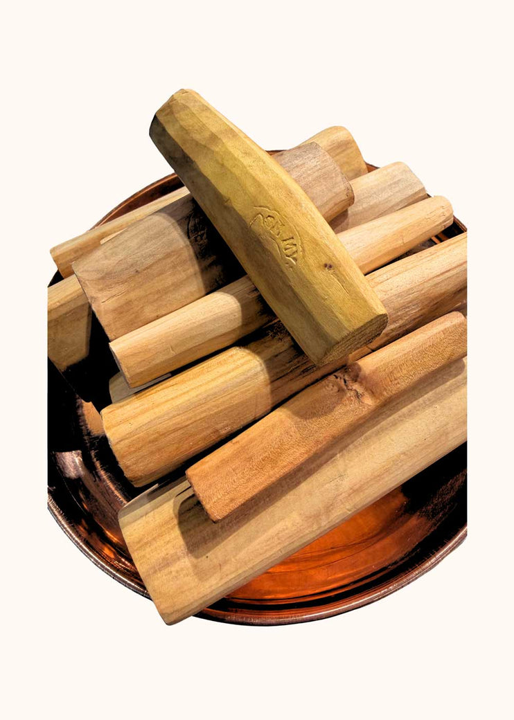 Pure white sandalwood wood, carefully selected and prepared using traditional methods, valued for its natural fragrance and traditional ritual use.